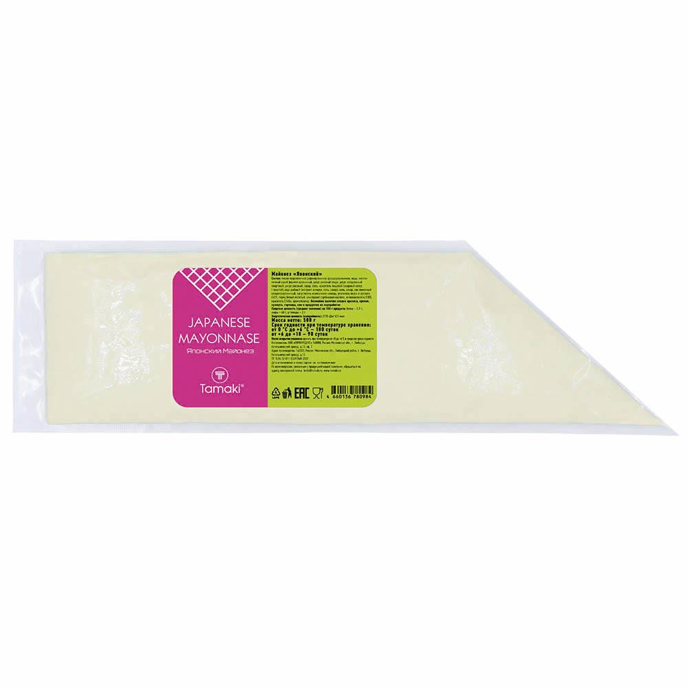 Масло подсолнечное рафинированное дезодорированное, вода, желток яичный сухой ферментированный, уксус рисовый(вода, уксус натуральный спиртовой, уксус рисовый, сахар, соль, краситель пищевой сахарный колер I простой), соус рыбный (экстракт анчоуса, соль, сахар), соль, сахар, сок лимонный концентрированный, загустители Е1422 и ксантановая камедь, усилитель вкуса и аромата Е1422 и ксантановая камедь, усилитель вкуса и аромата Е621, перец белый молотый, консервант сорбиновая кислота, антиокислитель Е385, краситель Е160а, ароматизатор.