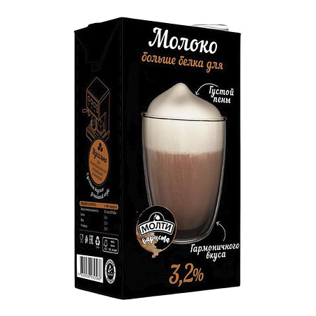 Молоко 3,2% 1л tetra-pak с крышкой Молти Бариста™ с пов.сод. белка БЗМЖ UHT (ПУ) (2083) (КОД 58195) (0°С)