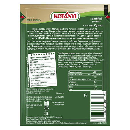 Приправа Сумах 10гр/пакет Kotanyi™ Австрия (185811) (КОД 58402) (+18°С)