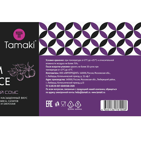 Соус сливовый 470мл пл/бут Tamaki™ Европродукт Россия (26) (КОД 58927) (+18°С)