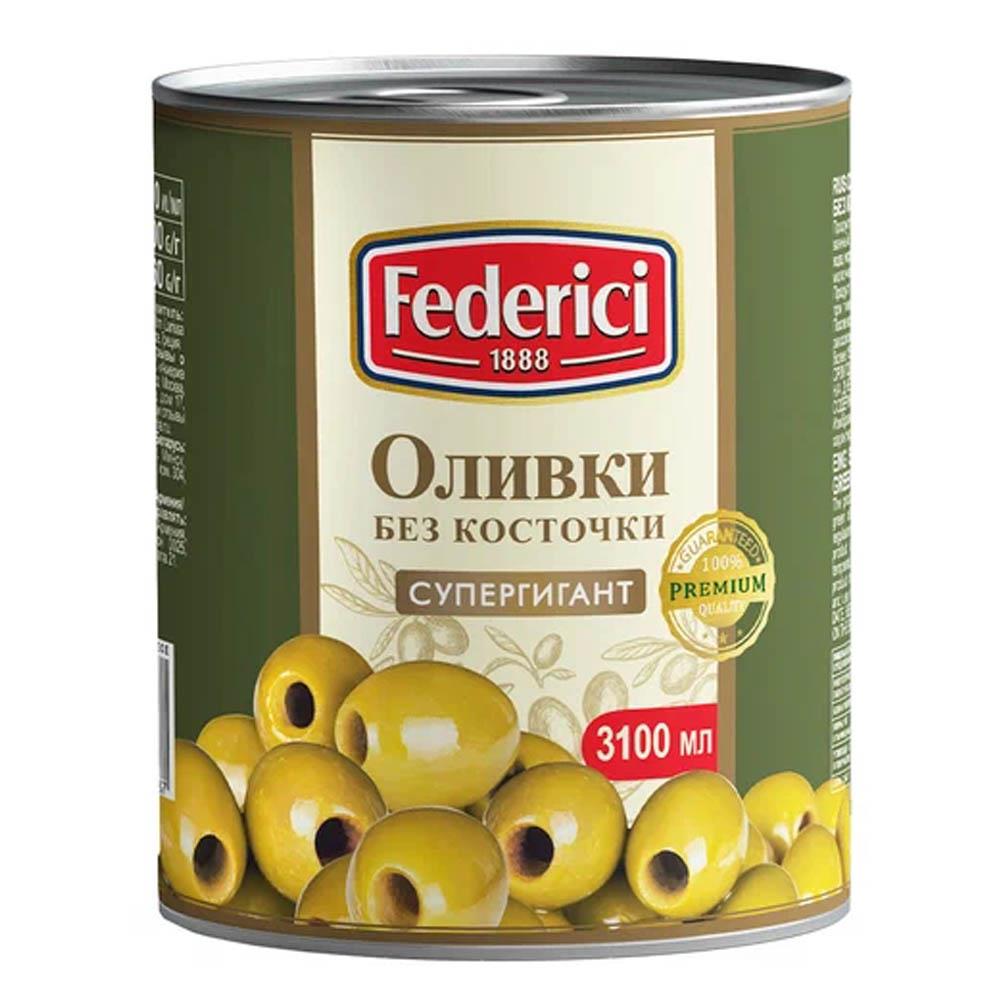 Оливки б/к Cупергигант 91/100 3кг/3,1л (осн.пр.1,56кг) ж/б Federici™ Греция (КОД 59005) (+18°С)