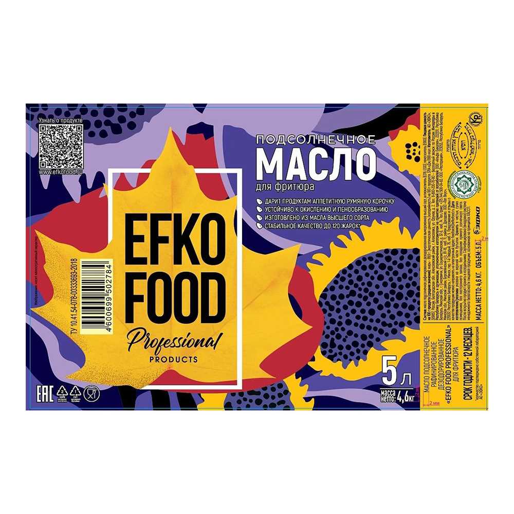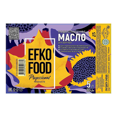 Масло фритюрное подсолнечное 5л пл/б Efko Food professional™ Эфко Россия (11201) (КОД 59491) (+18°С)