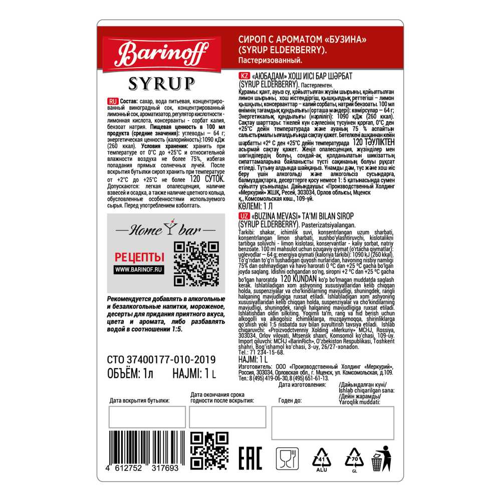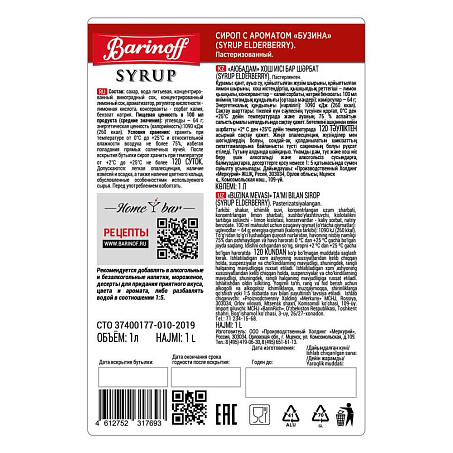 Сироп Бузина 1л ст/б Barinoff Syrup™ Россия (КОД 59861) (+18°С)
