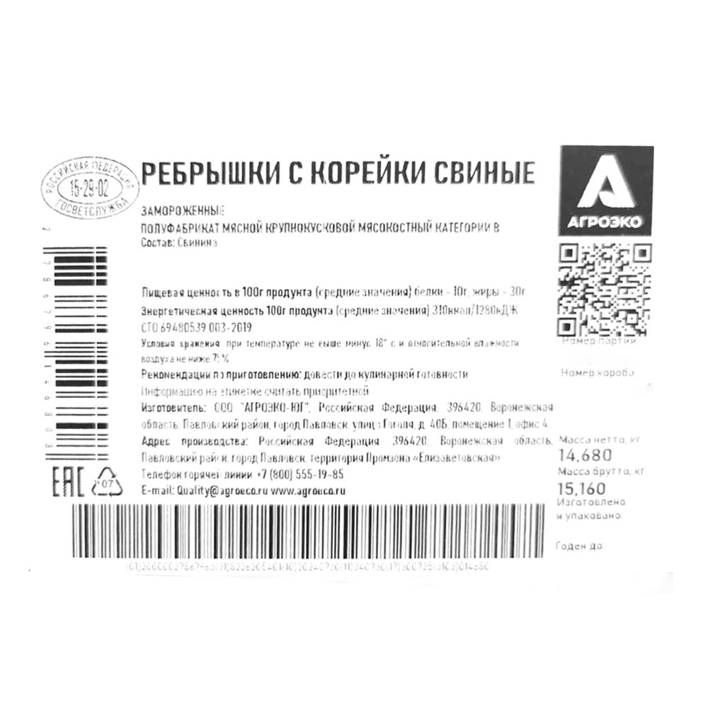 Свинина ребра с корейки ~14,5кг/кор вал кат.В Агроэко™ Россия (КОР) (КОД 60437) (-18°С)