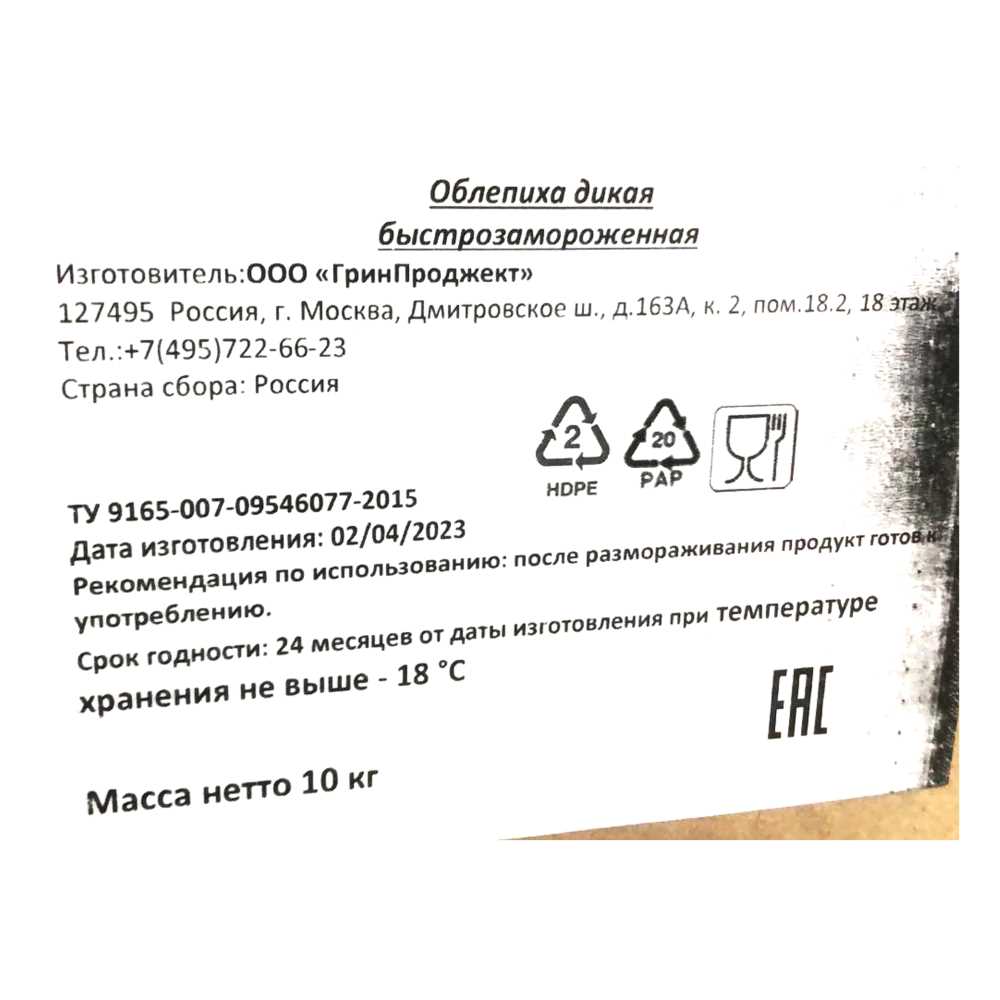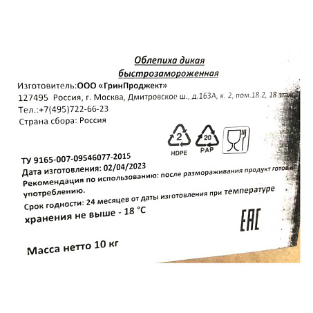 Облепиха с/м 10кг/кор дикая Россия (ПУ) (КОР) (КОД 61150) (-18°С)