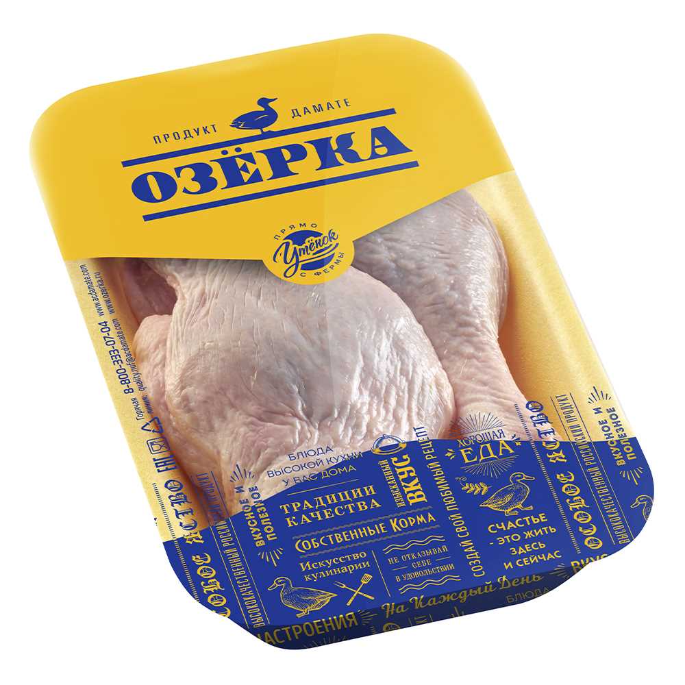Детальное описание: полуфабрикаты из мяса утки натуральные замороженные, окорочок утенка с кожей