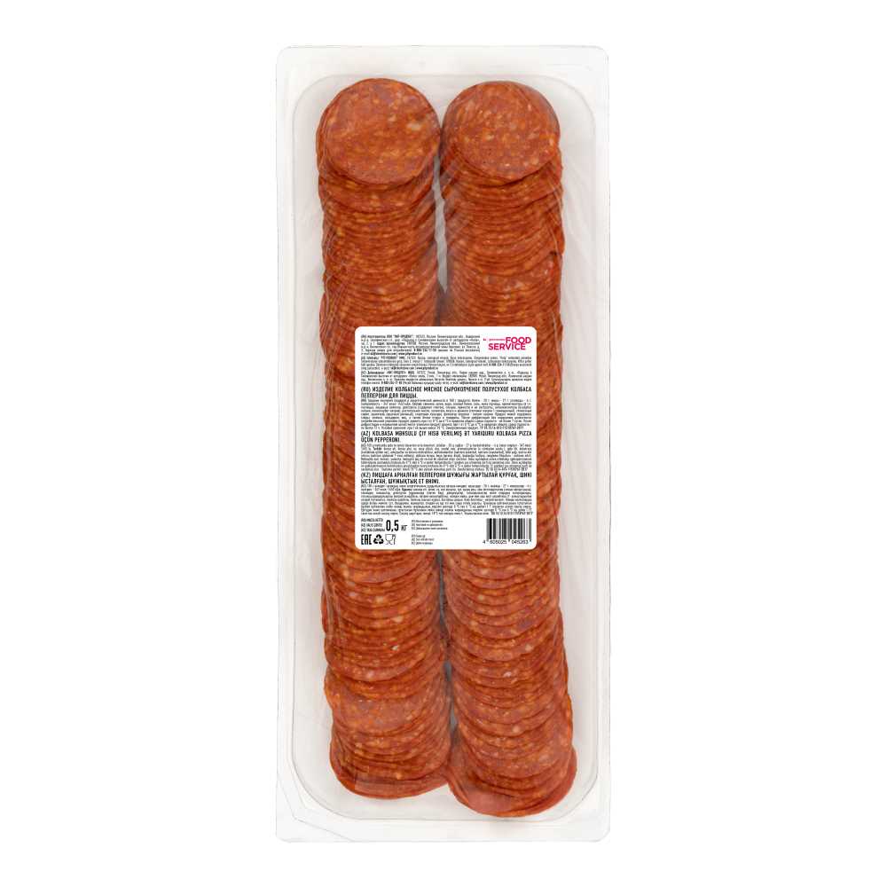 Колбаса Пепперони с/к нарезка для пиццы 500гр мгс Черкизово Food Service™ Россия (КОД 63449) (-18°С)