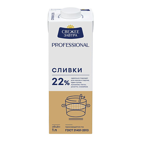 Сливки 22% 1л TBA edge Свежее Завтра Professional™ ГОСТ БЗМЖ UHT Несвижский ЗДП Беларусь(КОД 63690) (0°С)