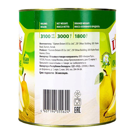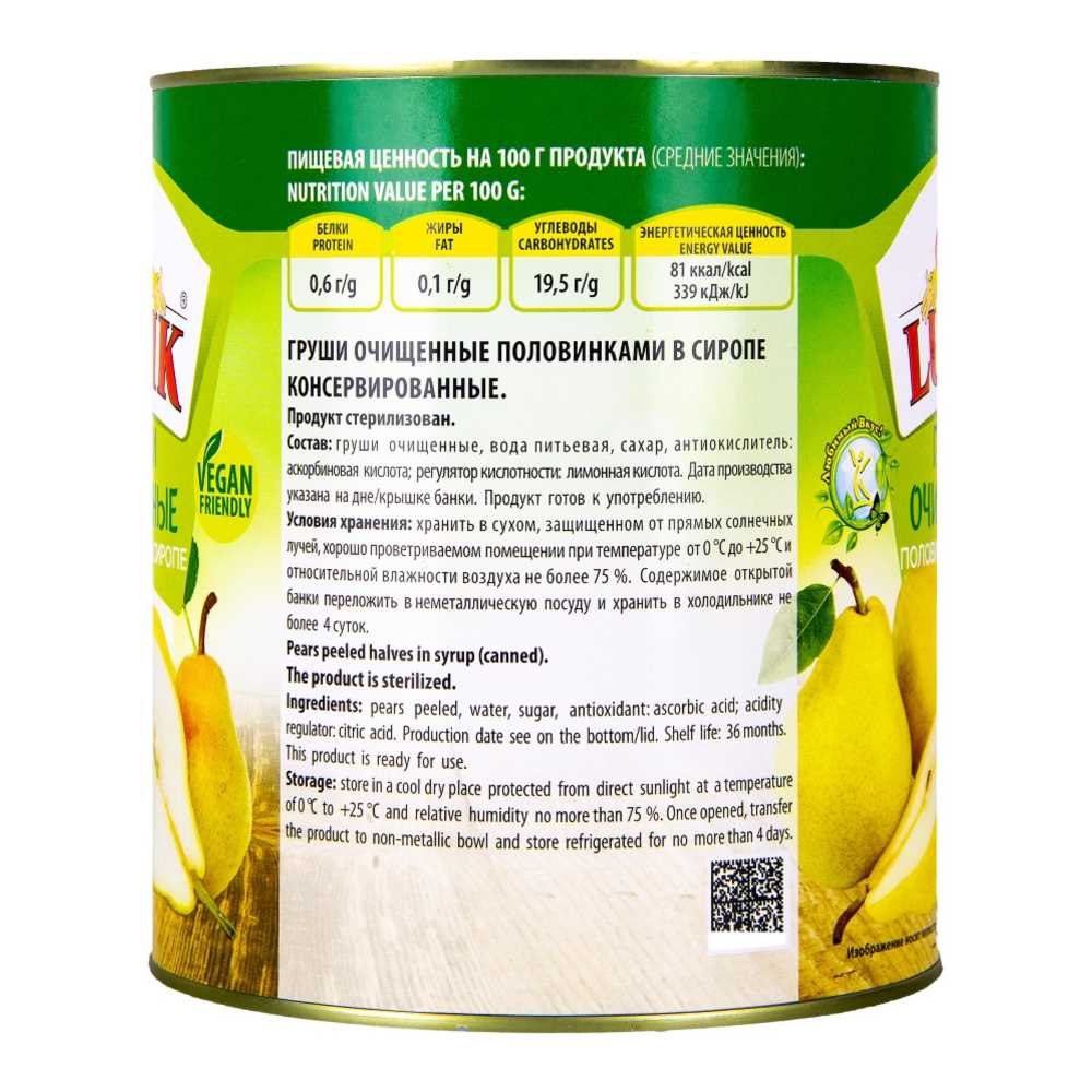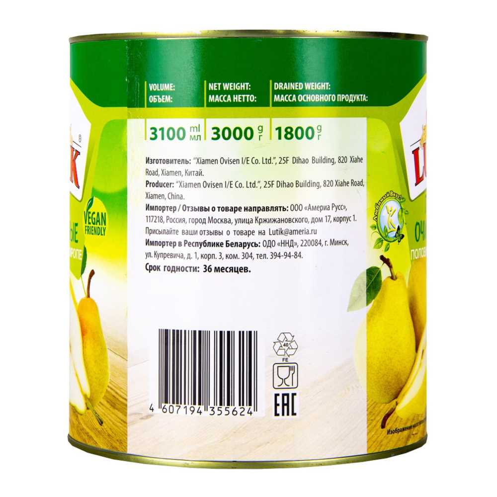 Груши половинки в сиропе 3кг/3,1л (осн.пр.1,8кг) ж/б Lutik™ Китай (КОД 64087) (+18°С)