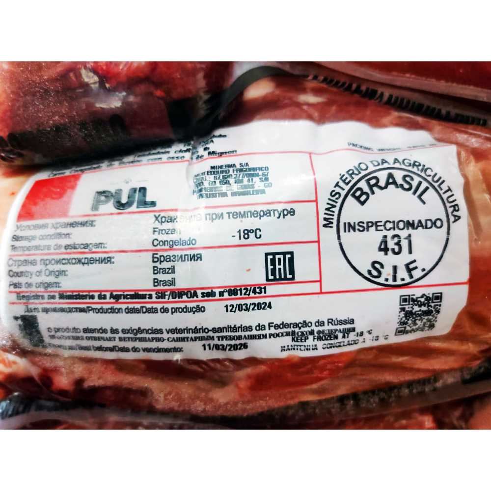 Говядина вырезка зачищ 4/5 1,8-2.3кг в/у ~25кг/кор Minerva™ Бразилия (ПУ) (КОР) (КОД 64553) (-18°С)