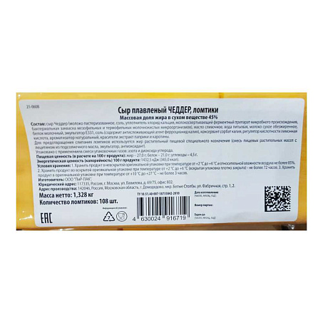 Сыр произведен по технологии плавленых сыров, отформован в виде квадратных ломтиков с ровными краями, уложен в стопки, упакован в полимерную барьерную пленку, в модифицированную газовую среду. Используется в пищу без предварительной обработки, а также в качестве компонента других блюд.