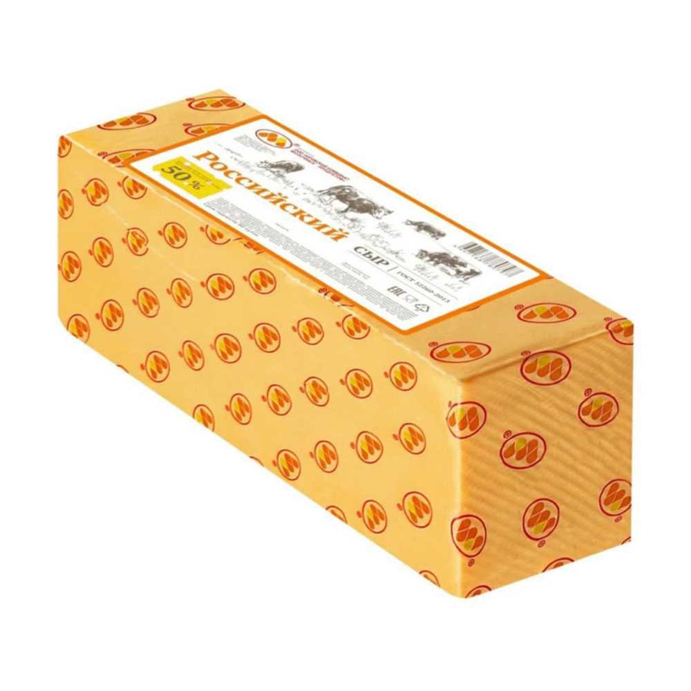 Сыр Российский 50% ~3кг/брус в/у БЗМЖ ГОСТ ЮКМП Россия (КОД 71353) (0°С)