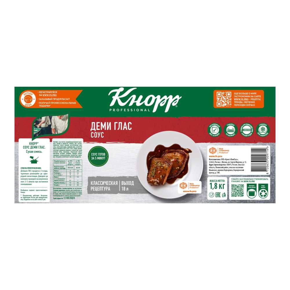 Соус Деми Глас 1,8кг пл/в сух. концентрат Knorr Professional™ КДВ Тула Россия (КОД 71405) (+18°С)