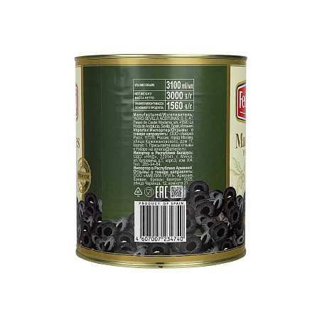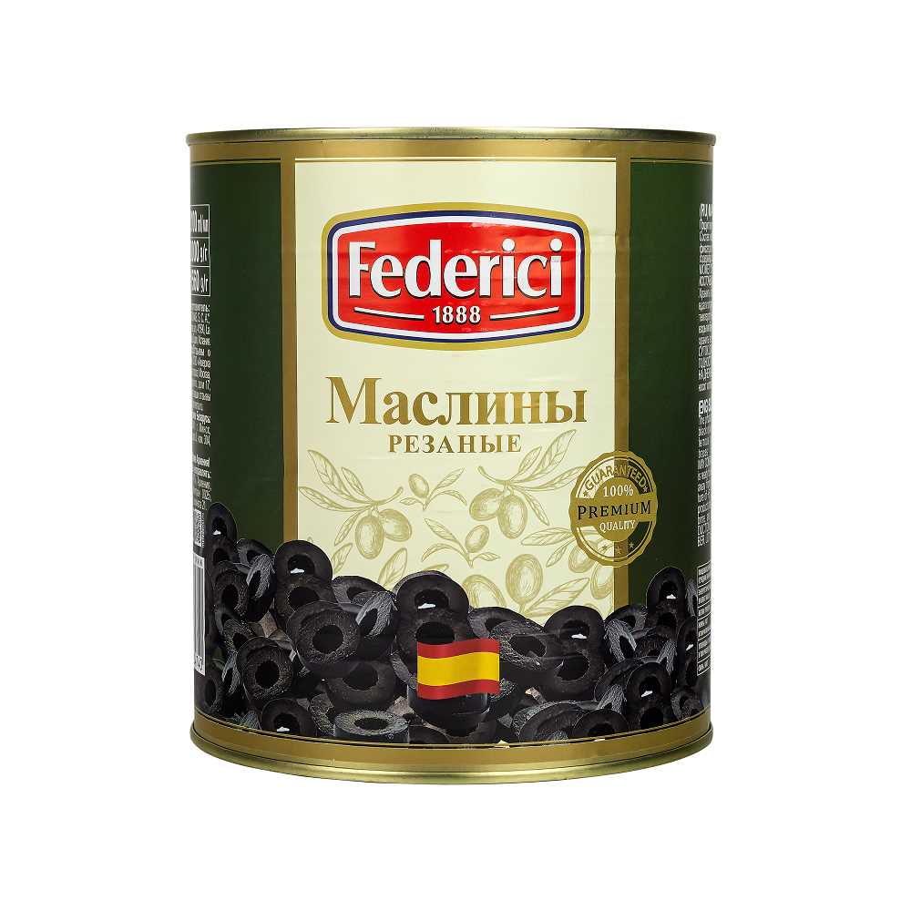 Маслины черные резаные 3кг/3,1л (осн.пр.1,56кг) ж/б Federici™ Испания (КОД 72684) (+18°С)
