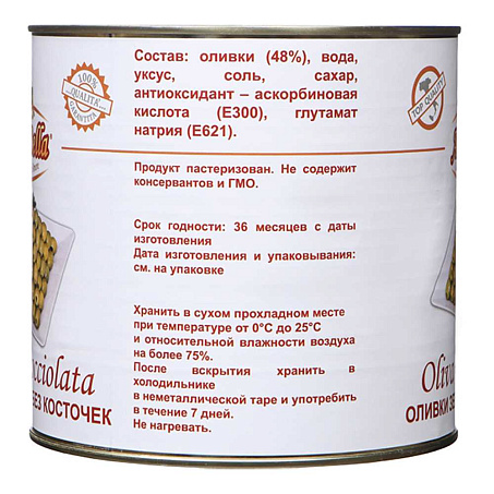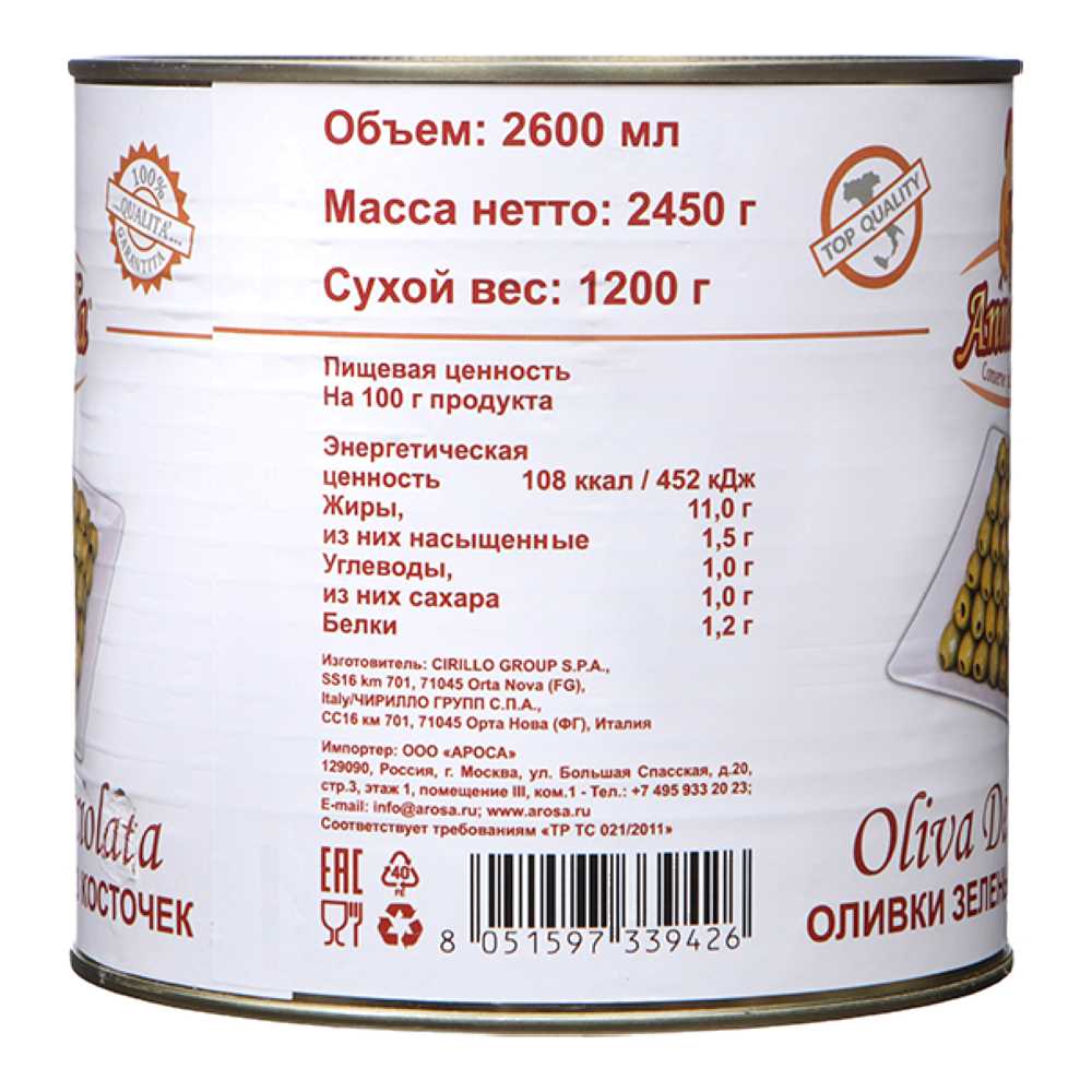 Оливки б/к некалибр 2,45кг/2,6л (осн.пр.1,2кг) ж/б AnnaBella™ Италия (КОД 73398) (+18°С)