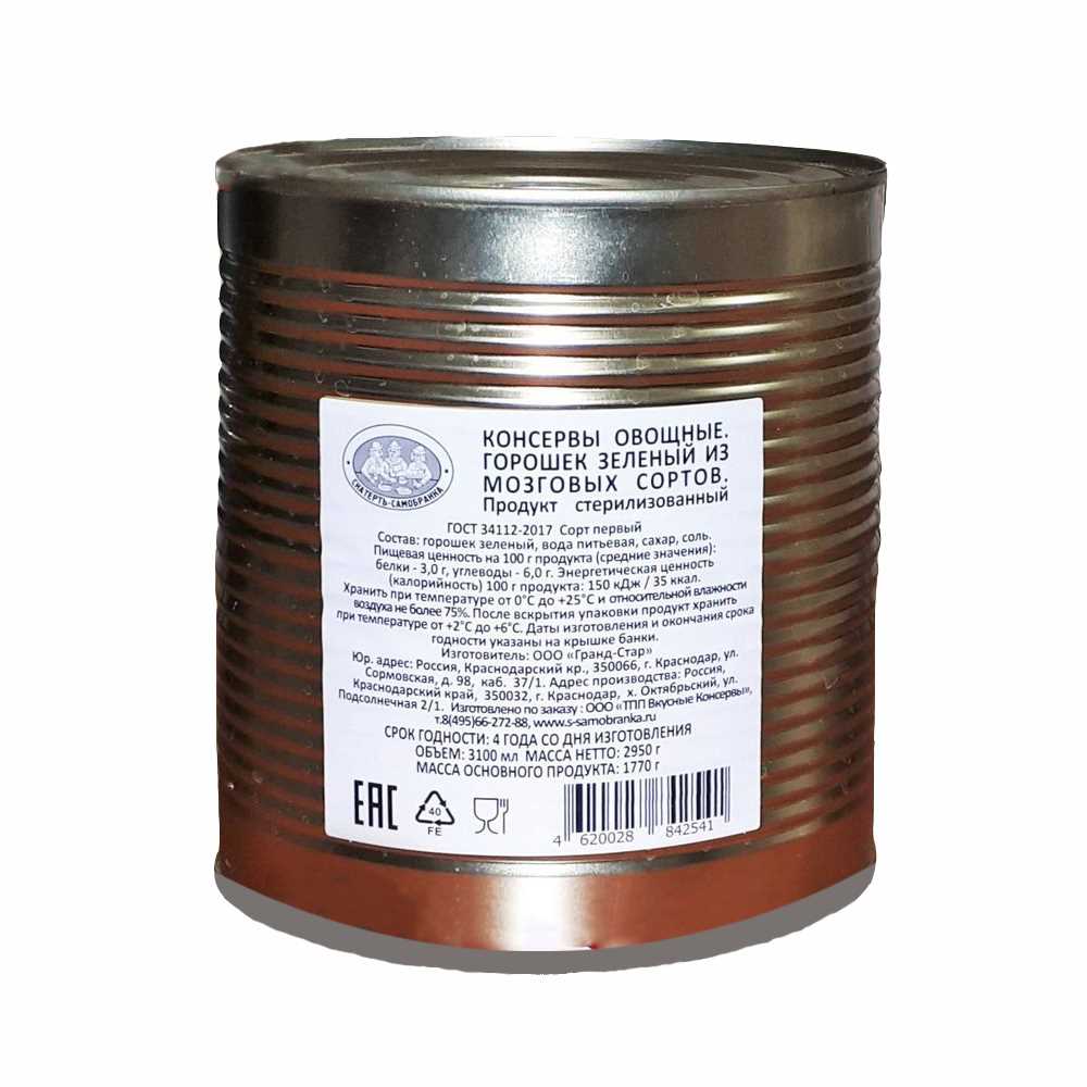Горошек консерв 2,95кг/3,1л (осн.пр.1,77кг) ж/б из мозг.сорт ГОСТ Скатерть Самобранка (ПУ)(КОД 73731) (+18°С)