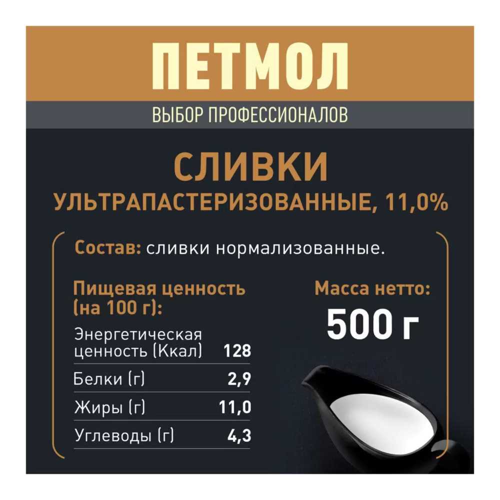 Сливки 11% 500гр tetra-pak для чая и кофе Петмол™ БЗМЖ UHT Эйч энд Эн Трейд Россия (КОД 73832) (0°С)