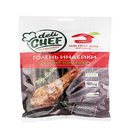 Индейка голень н/к с кожей ОХЛ ~0,45-0,55кг в/у томленная Мясной Дом Бородина Россия (1541) (КОД 73852) (0°С)