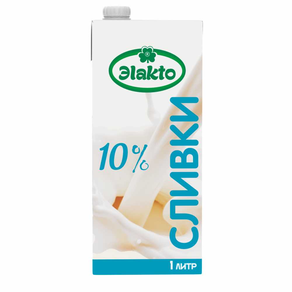 Сливки 10% 1л tetra-pak с крышкой питьевые Эlakto™ ГОСТ БЗМЖ UHT Эгида Поволжье (КОД 74256) (+18°С)