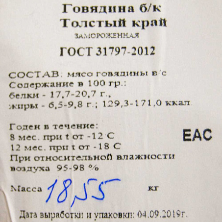 Говядина спинно-поясничный отруб б/к толстый край ~20кг/кор ГОСТ Тимашевскмясопродукт (КОР) (КОД 39237)(-18°С)