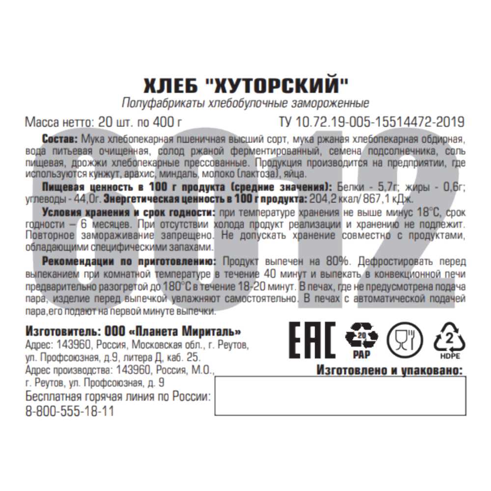 Ароматный «Хуторской» хлеб — настоящая находка для ценителей домашнего вкуса! Сочный мякиш, хрустящая корочка и неповторимый аромат свежевыпеченного хлеба с нотками ржаного солода и нежных семечек подсолнечника покорит ваше сердце с первого кусочка.
