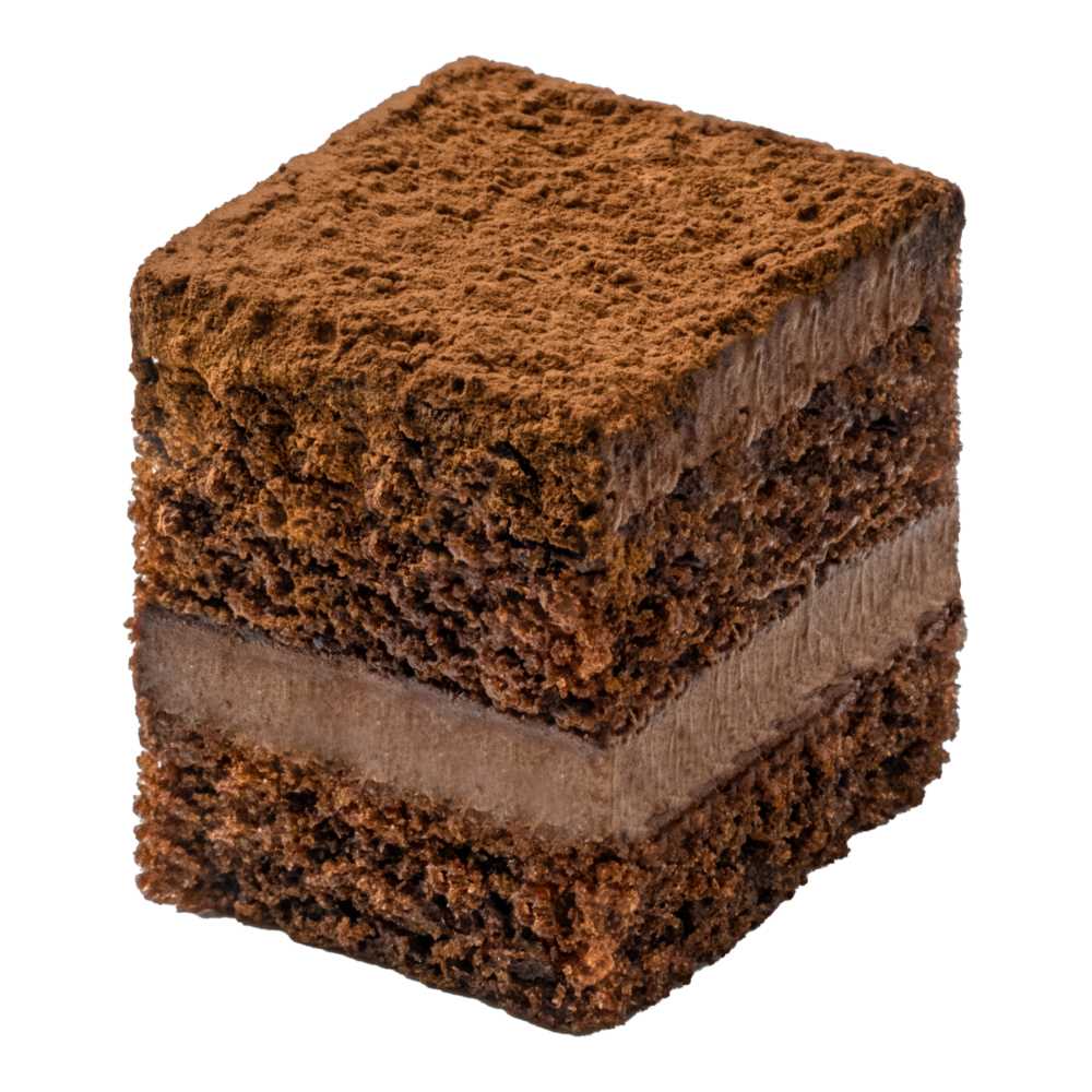 Детальное описание: "Шоколадный бисквит пропитанный коньяком с шоколадным кремом, украшенный слоем какао.
