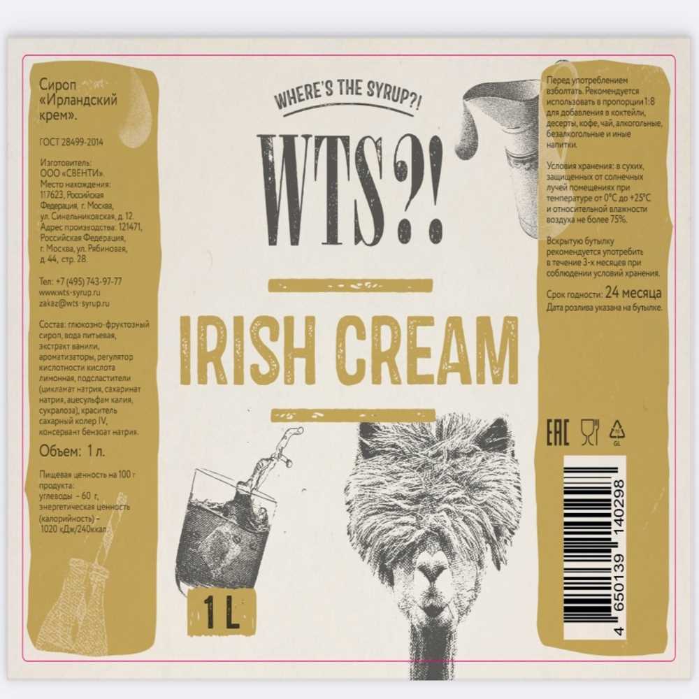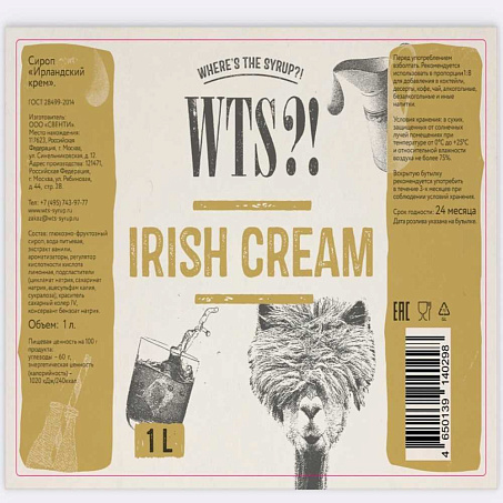 Сироп Ирландский крем 1л ст/бут WTS?™ Свенти Россия (КОД 39539) (+18°С)