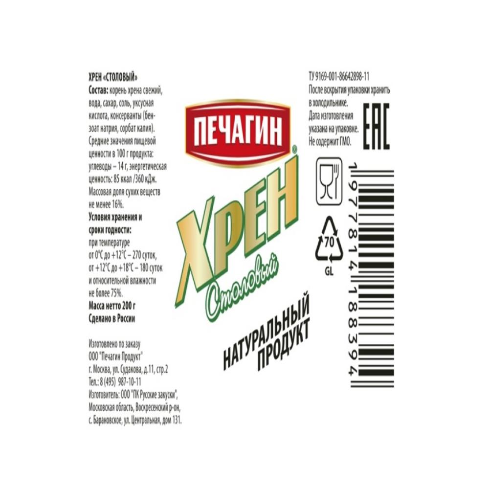 Хрен столовый 200гр ст/б Печагин Россия (СИ-00002232) (КОД 39712) (0°С)
