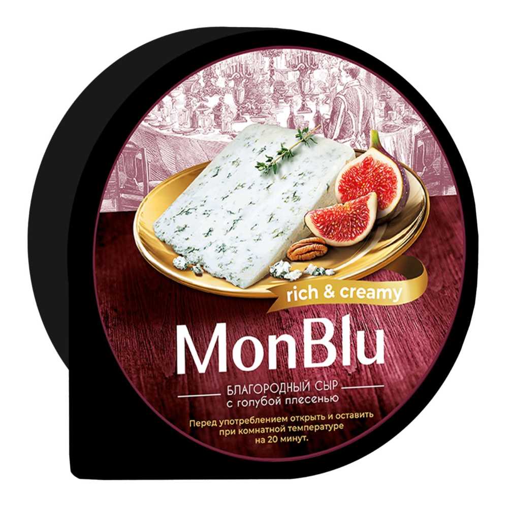 Сыр MonBlu с голубой плесенью Сливочный 60% ~2,5кг/круг БЗМЖ Бобровский сырзавод Россия (КОД 40055) (0°С)