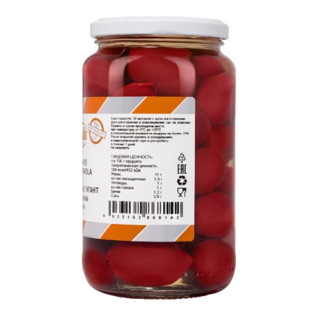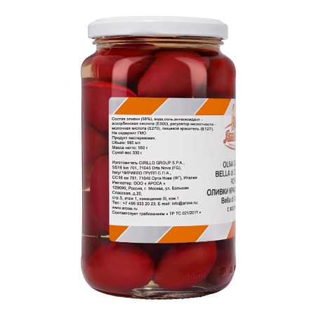 красные оливки сорта «Bella di Cerignola» (Белла ди Чериньола), вымоченные в подкисленном рассоле