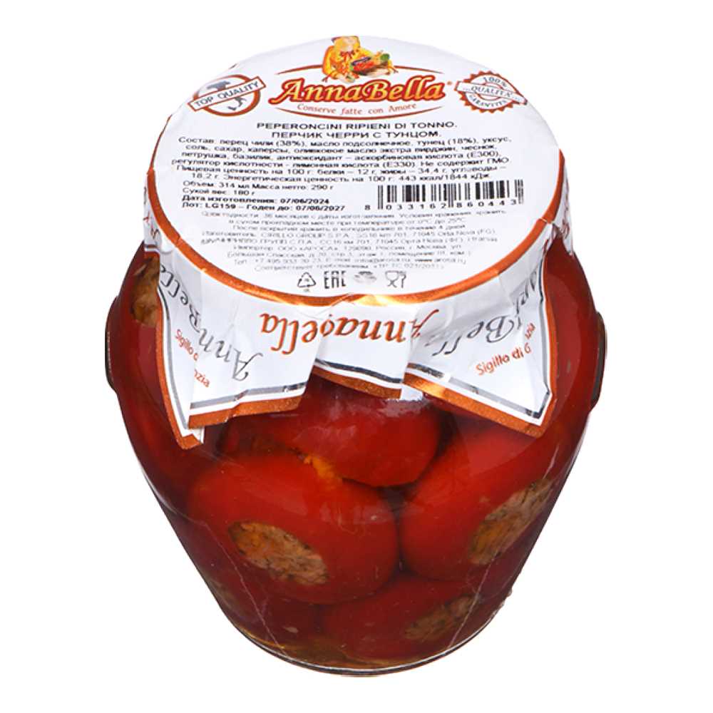 Фаршированный перец черри это вкусное и питательное блюдо, которое сочетает в себе пикантный перец черри и отборный тунец. Каждый перец фарширован высококачественным тунцом, который бережно приготовлен и обработан, чтобы сохранить все его полезные свойства и вкус. Это блюдо прекрасно подойдет для тех, кто следит за своим здоровьем и питается правильно, так как оно не содержит консервантов, красителей и искусственных добавок. Перец черри является источником витаминов, минералов и антиоксидантов, которые необходимы для поддержания здоровья и иммунитета. Блюдо упаковано в удобную банку и готово к употреблению. Оно идеально подходит для закуски, легкого обеда или ужина.