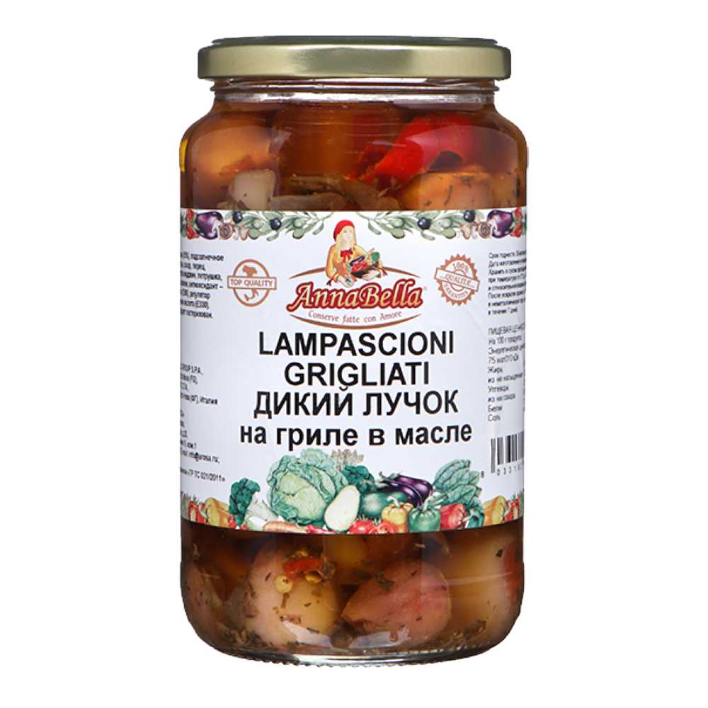 Лучок дикий на гриле вымоченный в масле в стеклянной банке.