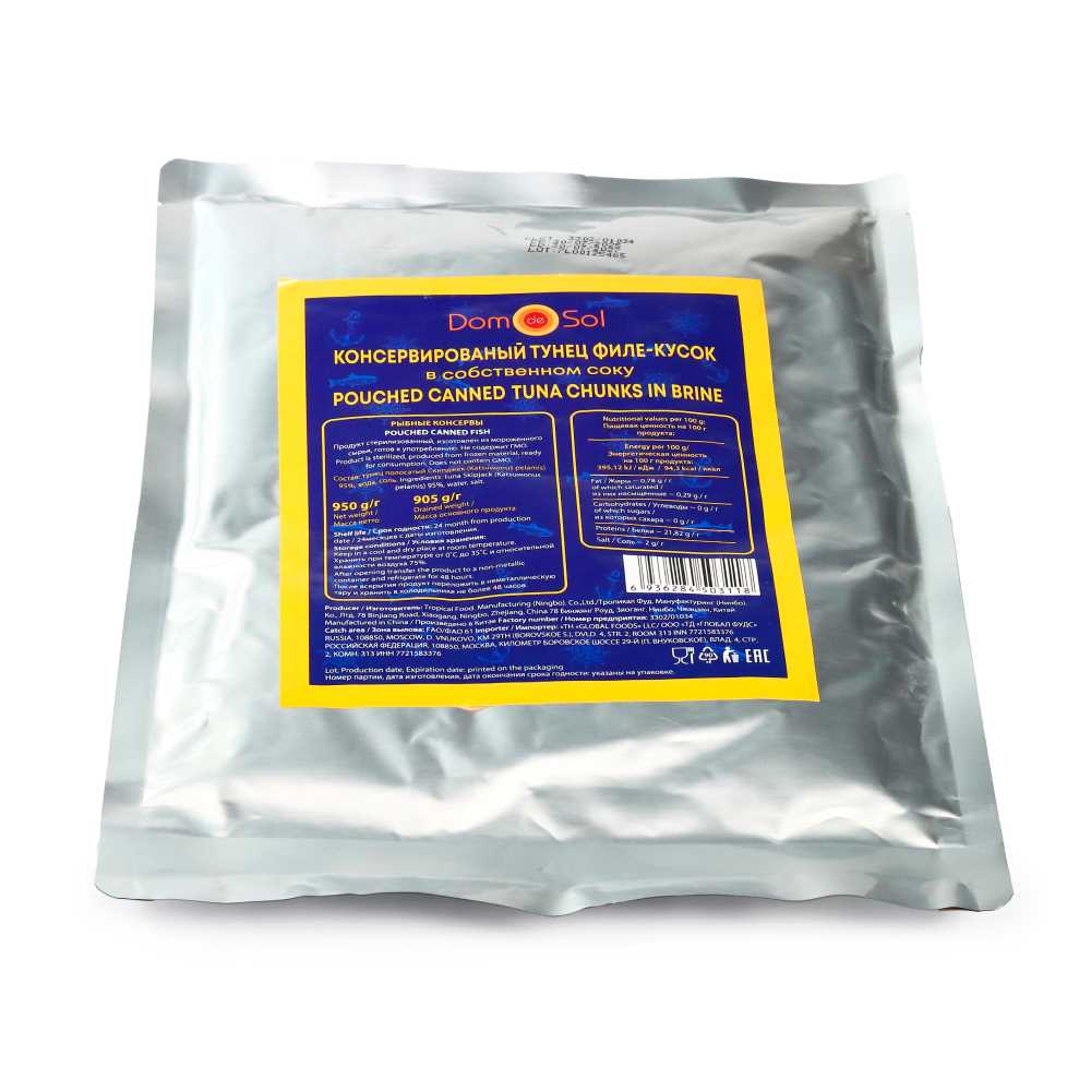 Тунец консерв. в собст.соку кусочки 950гр (осн.пр.905гр) пауч Dom de Sol™ Китай (КОД 44235) (+18°С)