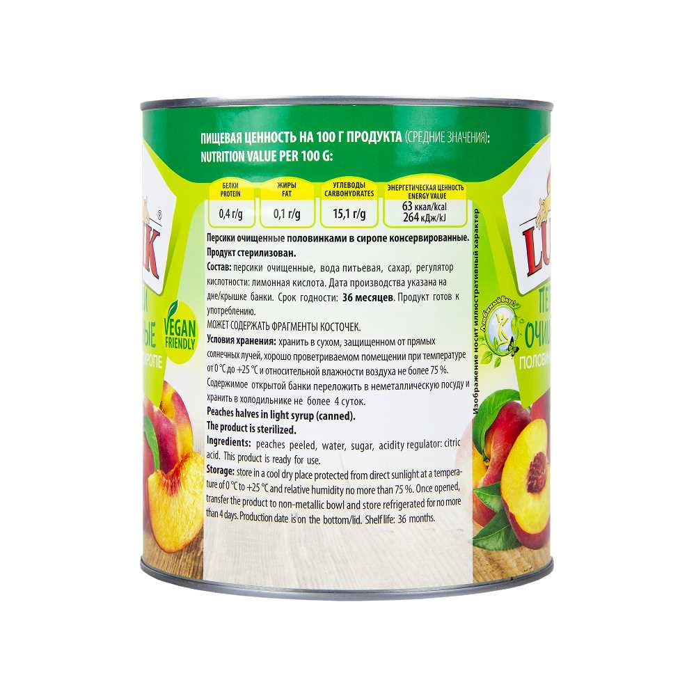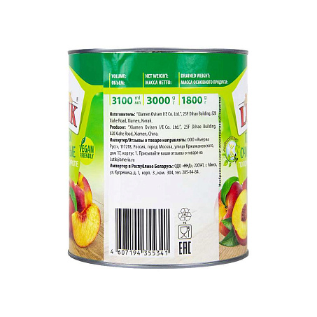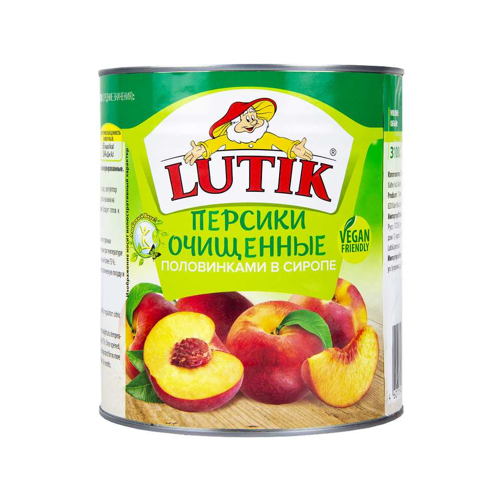 Персики половинки в сиропе 3,1л/3кг (осн.пр.1,8кг) ж/б Lutik™ Китай (КОД 56296) (+18°С)