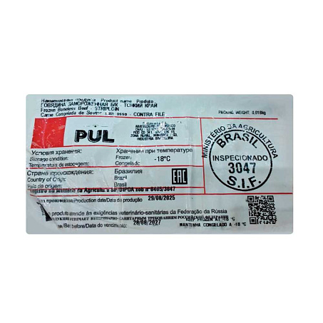 Говядина Стриплойн поясн отруб б/к тонкий край ~15кг/кор Pul™ SIF №3047 Бразилия (КОР) (КОД 75958) (-18°С)