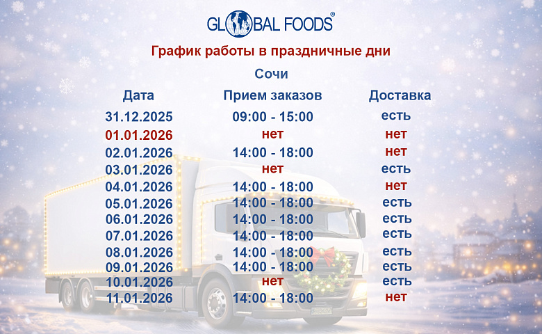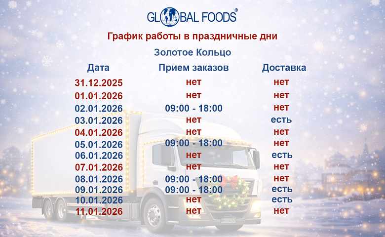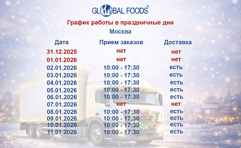 Благодарим вас за сотрудничество и доверие. С уважением, Команда Global Foods