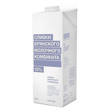 Сливки 10% 1кг TBA Edge питьевые ГОСТ БЗМЖ UHT Брянский МК Россия (КОД 19949) (0°С)