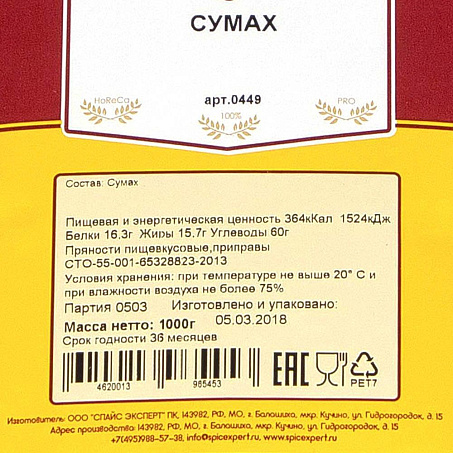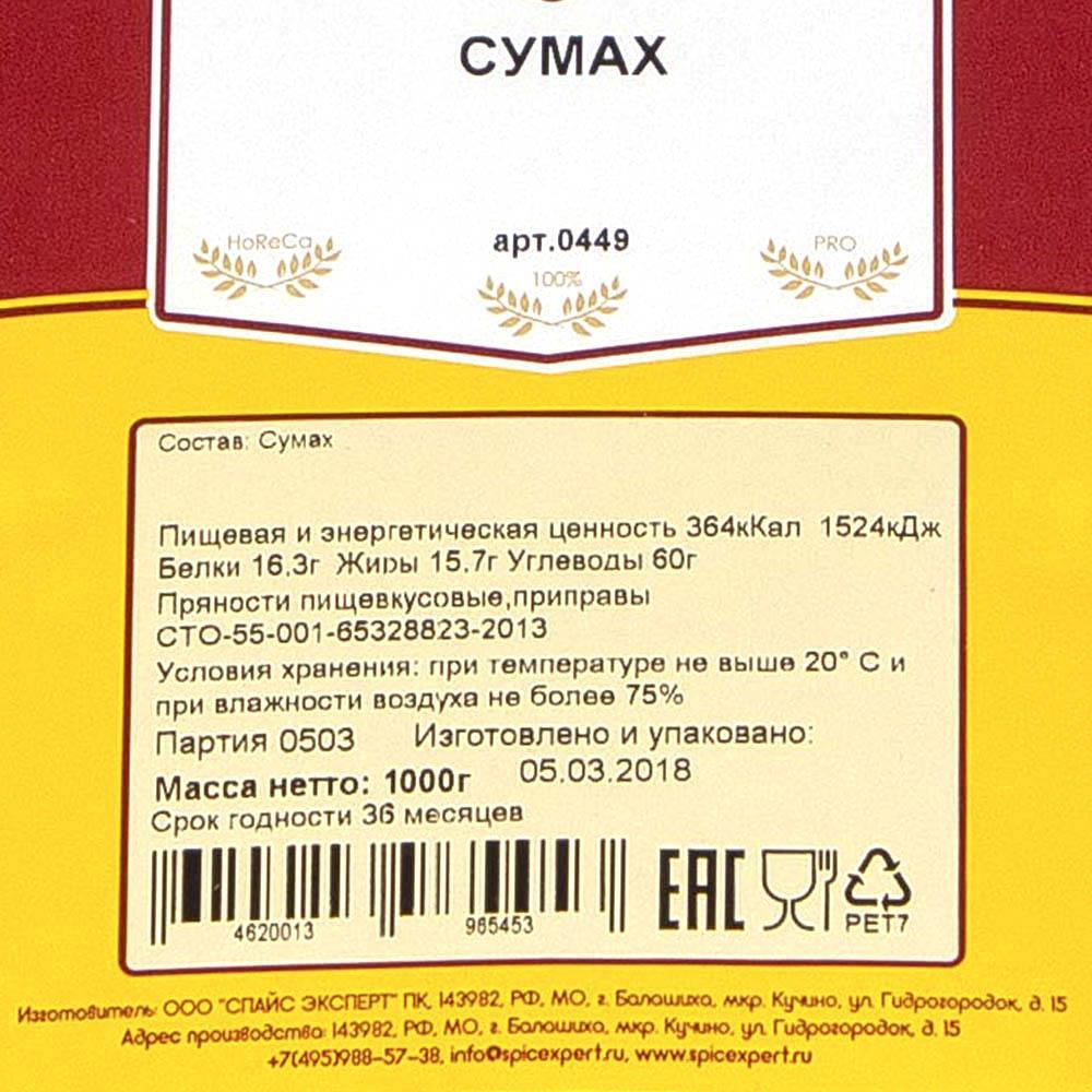Приправа сумах 1кг/пакет Спайс Эксперт Россия (КОД 16304) (+18°С)