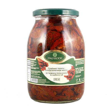 Томаты вяленые в масле 1,062л/900гр (осн.пр.430гр) ст/б Italcarciofi Италия (КОД 14383) (+18°С)
