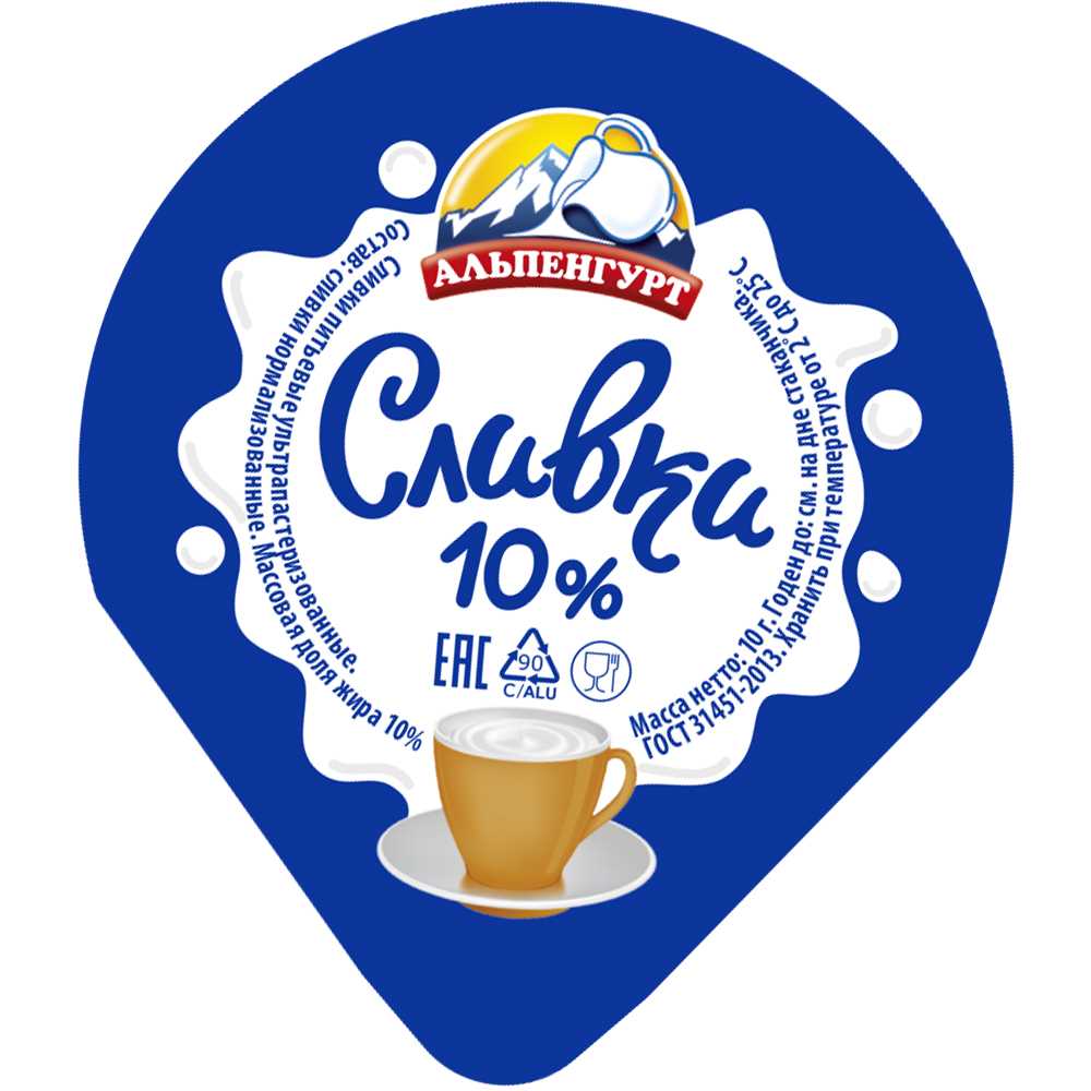 Сливки порционные 10% 10грх200шт/кор UHT БЗМЖ Альпенгурт™ ГОСТ Россия (КОР) (КОД 11355) (0°С)