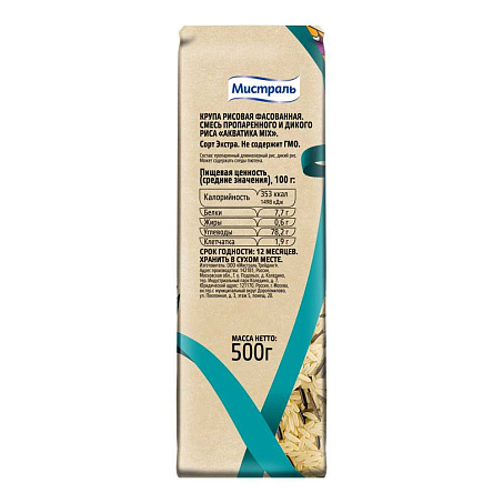 Рис смесь (дикий и белый пропарен.) Акватика Микс 500гр х 12шт пэт Мистраль Россия (КОД 97460)