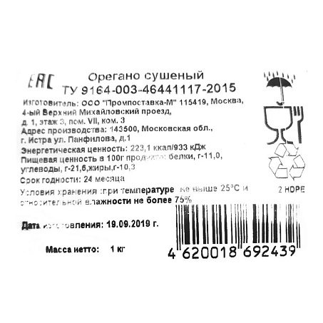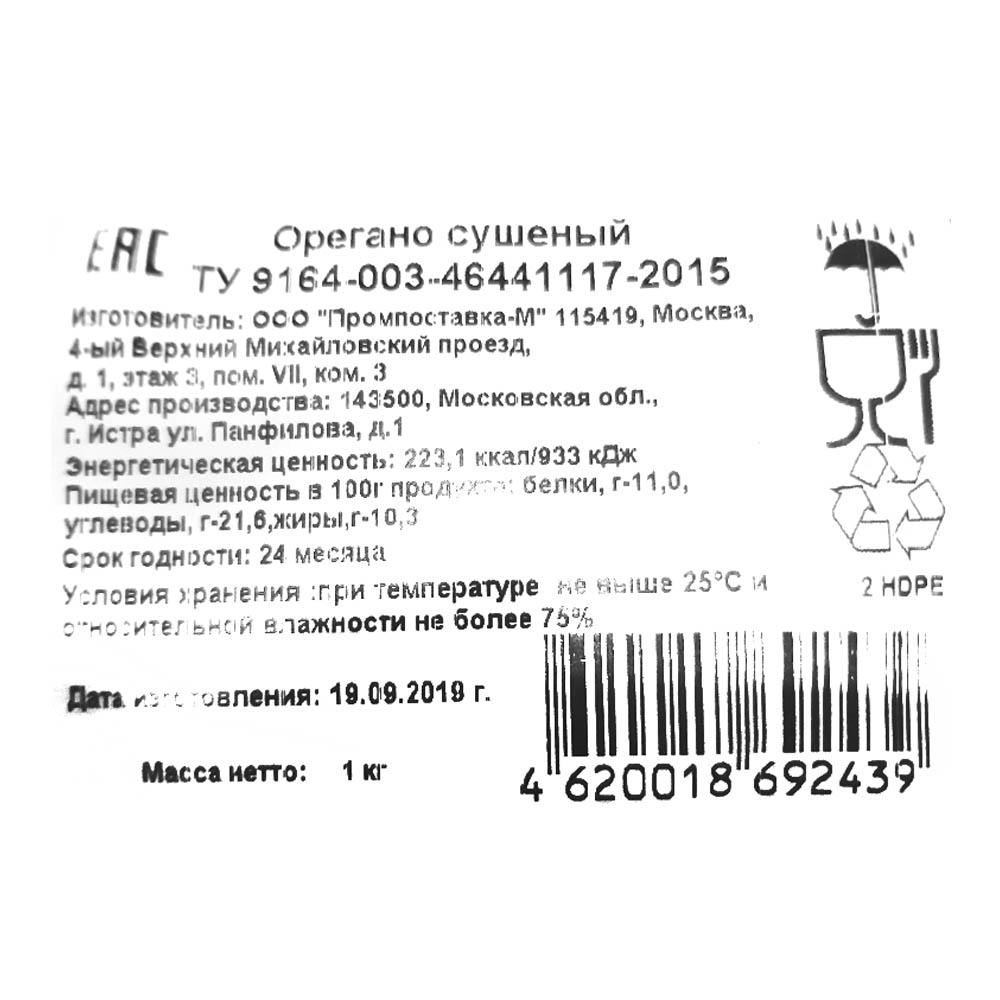 Орегано (душица) сушеный 1кг/пакет Промпоставка-М Россия (КОД 10553) (+18°С)