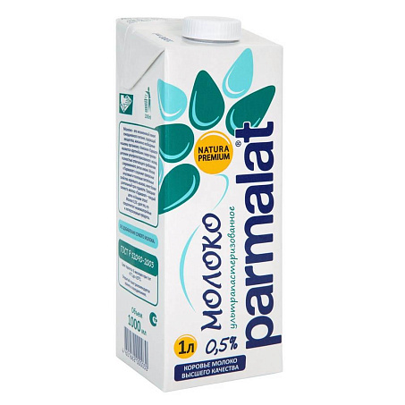 Молоко 0,5% 1л (950гр) tetra-pak Parmalat™ ГОСТ БЗМЖ UHT Белгородский МК Россия (КОД 14119) (0°С)