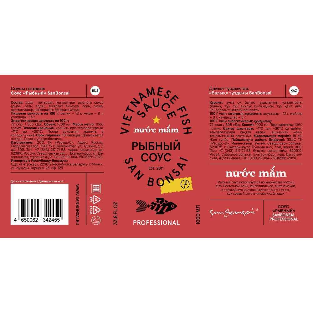 Соус рыбный 1л пл/бут SanBonsai Professional™ Ресурс-С Россия (КОД 51047) (+18°С)