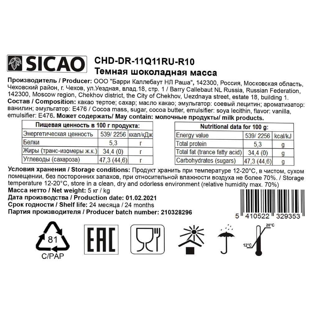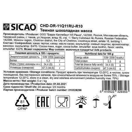 Шоколад темный 54,1% таблетки 5кг/пакет Sicao Россия (CHD-Q54-25B) (КОД 93844) (+18°С)