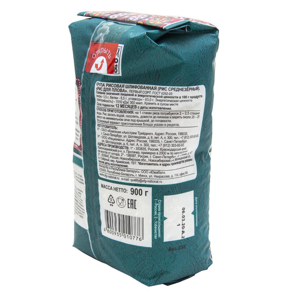 Рис для плова 900гр пакет ГОСТ Националь™ Ангстрем Трейдинг Россия (КОД 17367) (+18°С)