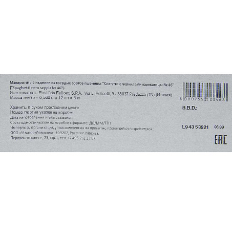 Макароны Спагетти с чернилами каракатицы 500г Felicetti Италия (КОД 98081)(+18°С)