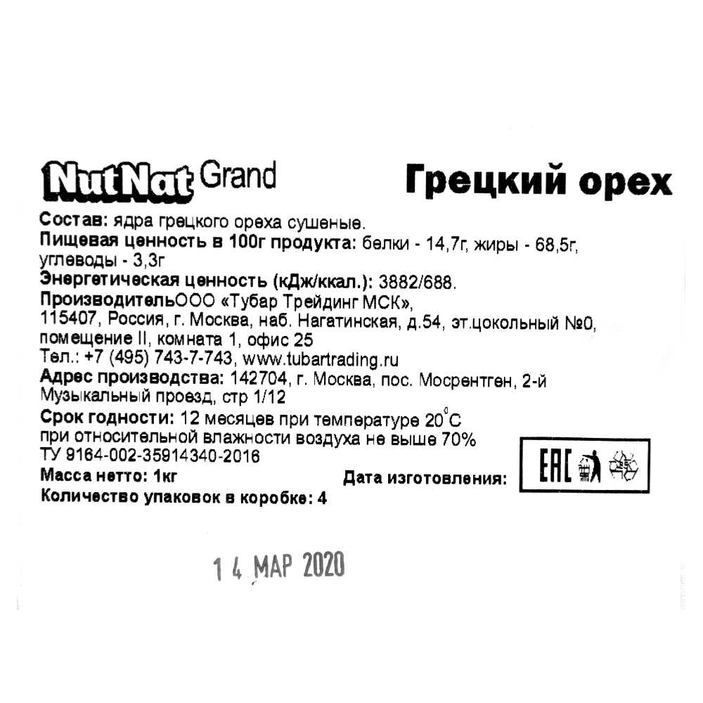 Грецкий орех очищ половинки 1кг/пакет NutNat Grand™ (КОД 31114) (+18°С)