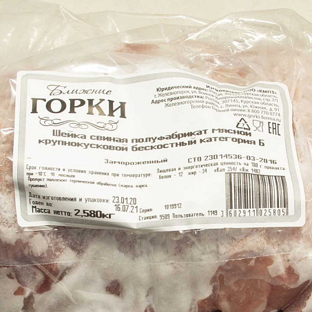 Свинина шейка б/к ~2-4кг/пакет кат.Б Ближние Горки™ КМПЗ Россия (КОД 31893) (-18°С)