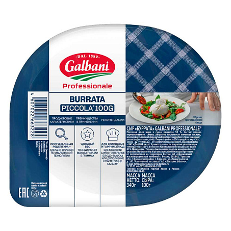 Сыр Буррата Мини 50% 340гр (осн.пр.100гр) пл/стак БЗМЖ Galbani Professionale Россия (КОД 36020) (0°С)